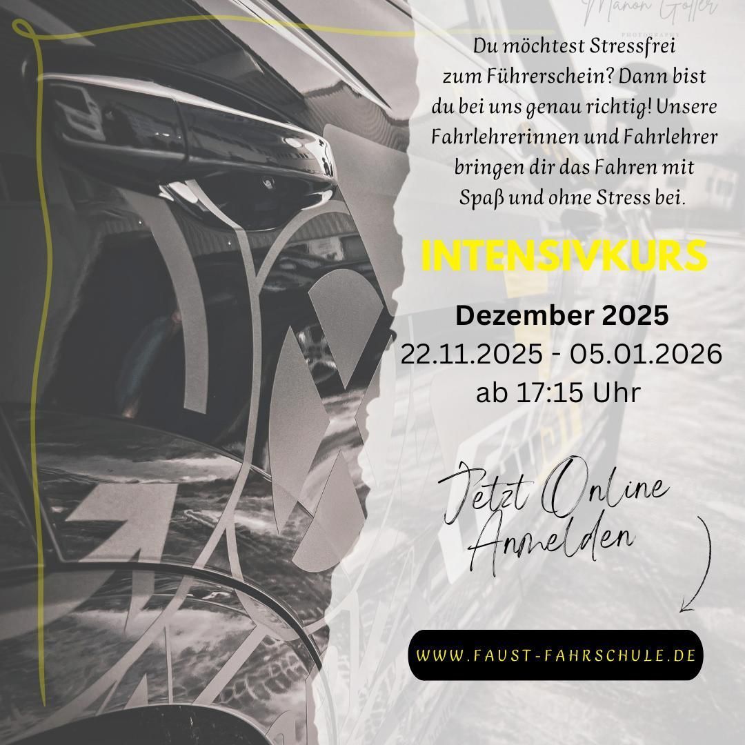 Stressfrei zum Führerschein. Melde dich jetzt für den nächsten Intensivkurs an: